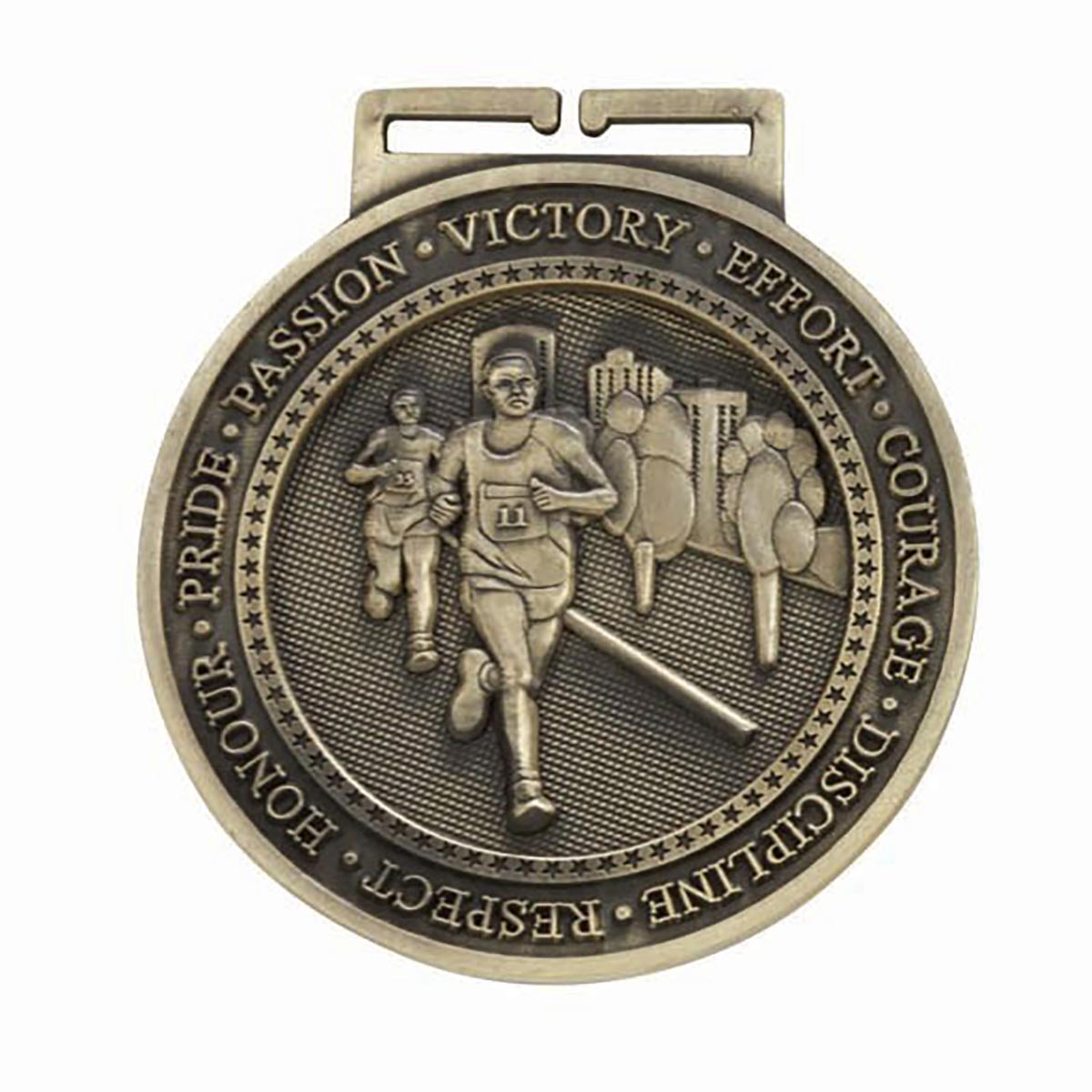 Gold pressed marathon medals with running scene.See our medal ribbons section for olympia coloured ribbons.
